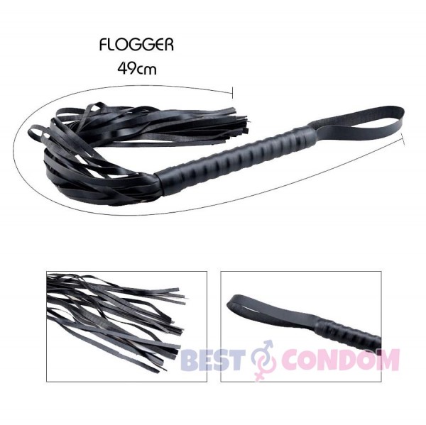 - Невеликий флогер для дражливих поплескувань та відчутних ляпанців. Довжина флогера 43 см, робочої частини — 31,5 см, діаметр ручки 1,6 см. Рукоятка з обплетенням та петлею, комфортна та не слизька.