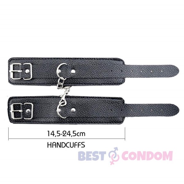 - Наручники на ланцюжку із карабіном. М'які широкі наручники зі шкірозамінника, які регулюються за об’ємом — чудовий спосіб фіксації! Між собою з'єднані знімним ланцюжком. Фіксуйте руки між собою, на ліжку або в будь-якому іншому місці! Ширина наручників 5 див, довжина регулюється від 14,5 до 24,5 см.