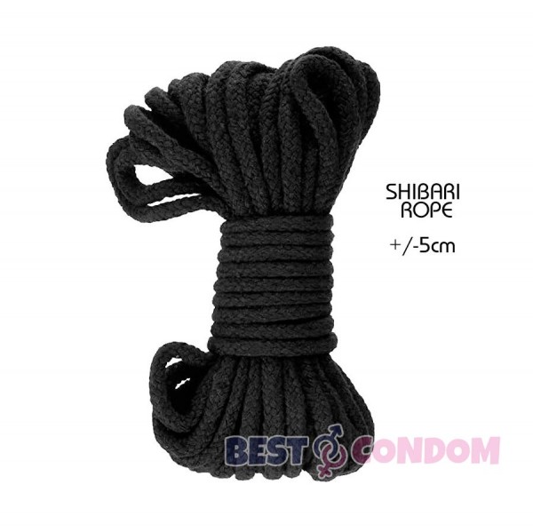 - Бавовняна мотузка для шибарі та/або зв'язування довжиною +- 5 м. Краї мотузки оброблені і не розтріпуватимуться. Такої довжини мотузки цілком вистачить для зв'язування рук чи ніг або для нескладних обв'язок шибарі, наприклад, у зоні грудей. Чудова нагода спробувати свої сили!