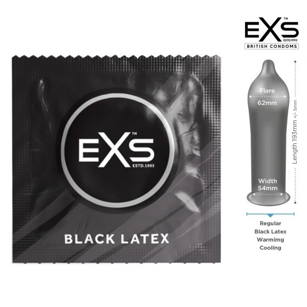 Презервативи EXS Black Latex виготовлені з чорного шовковистого латексу і при цьому не мають специфічного запаху латексу, мають анатомічну форму, вони не тільки гарно виглядають, але й ідеально сидять завдяки зручному розширеному кінчику. Британський інститут стандартів (BSI) перевірив їх на відповідність європейським стандартам.Презервативи з чорного латексу - відчуйте себе ексклюзивно та особливо!
