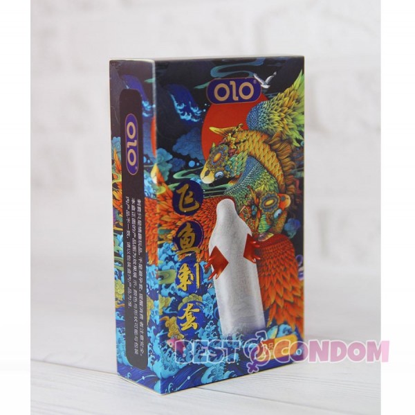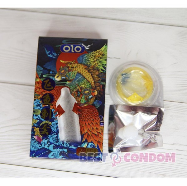 Презервативи з вусиками Olo FLYING KOI 1шт, на гіалуроновій основі шипи + кулька.