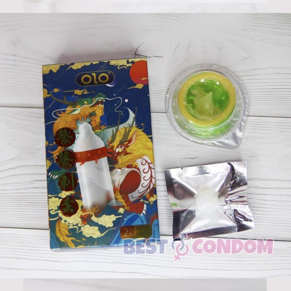 Презервативи з вусиками Olo KIRIN DRAGON 1шт, на гіалуроновій основі шипи + кулька.