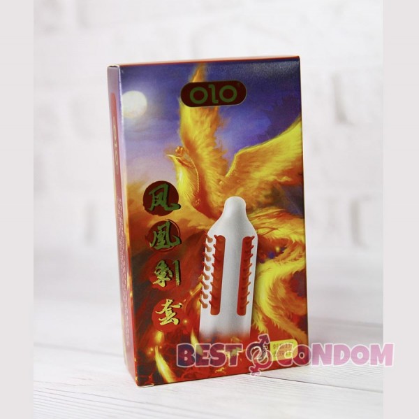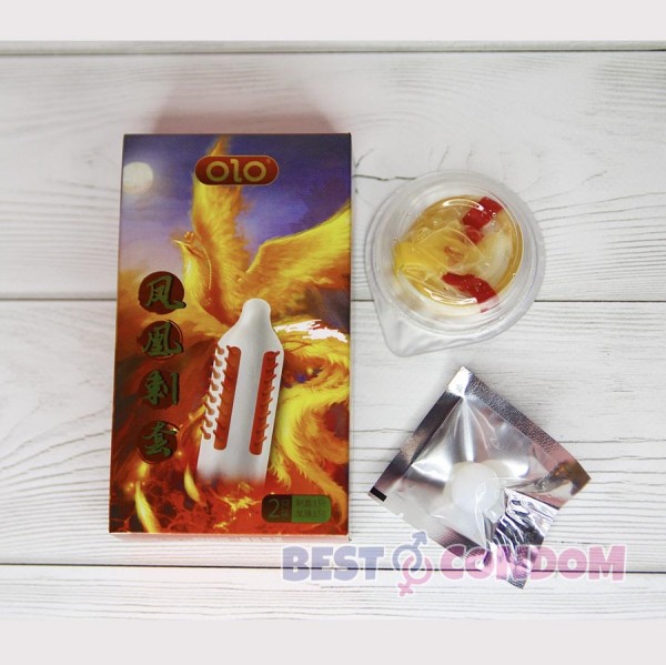 Презервативи з вусиками - Olo PHOENIX SUZAKU 1шт, на гіалуроновій основі шипи + кулька.