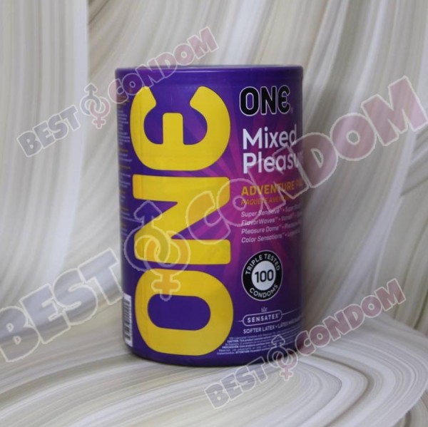 Ця упаковка містить 10 різних видів презервативів ONE по 10 шт. кожного виду в загальному 100 шт.