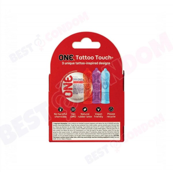 One Tattoo Touch – презервативи анатомічної форми з унікальним текстурним малюнком, що забезпечує додаткове стимулювання та задоволення.