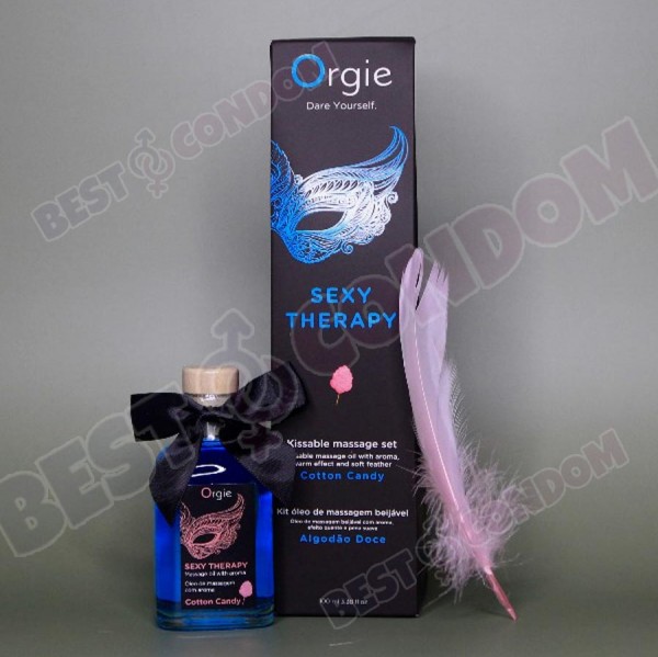 Цей набір подарує незабутній інтимний досвід. У наборі: смачна їстівна масажна олія з легким зігріваючим ефектом (ідеально для оральних ласок); перо для використання в техніці "масаж губ" та для чуттєвої гри; посібник з техніки масажу. Аромат та смак цукрової вати. 100мл. Олія Sexy Therapy, що дає ефект тепла на шкірі, без гіркоти в післясмак; • спеціальне м'яке пір'їнка; • детальний інструктаж з техніки такого масажу.