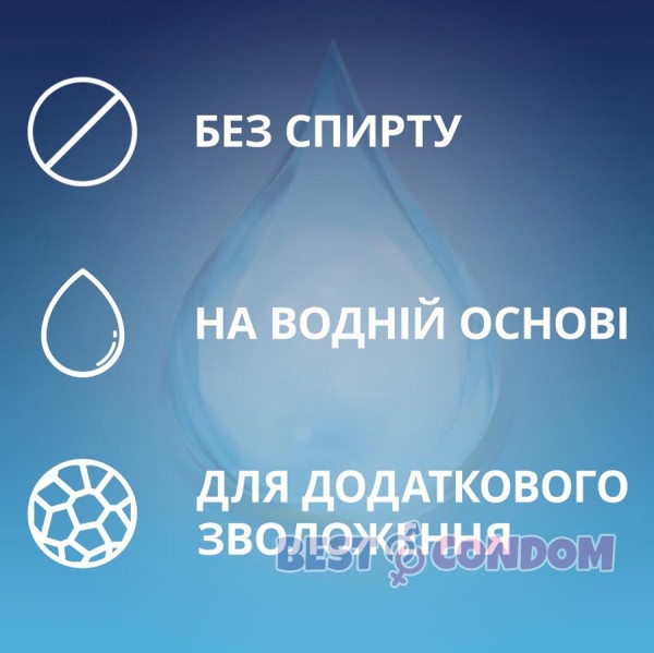 М'який і делікатний прозорий гель-змазка на водній основі, не залишає плям. Ідеальний для використання з презервативом, не пошкоджує латекс. Унеможливлює тертя, що зменшує ймовірність розриву презерватива та виникнення мікроушкоджень слизової оболонки.