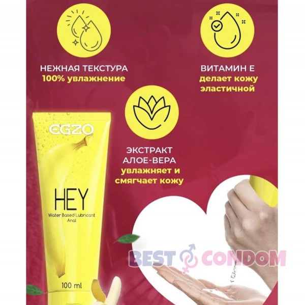 Лубрикант з ароматом банана EGZO HEY подарує максимальний комфорт та неймовірне задоволення при занятті анальним сексом. Спеціальна формула забезпечить максимальне ковзання, а отже – безболісний та чуттєвий секс.