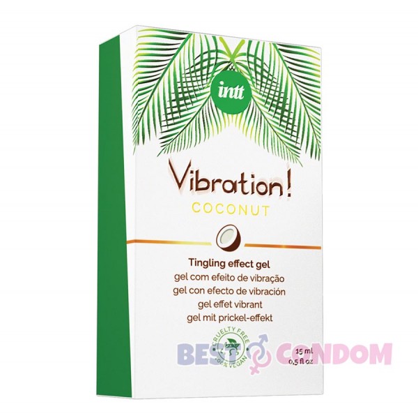 Рідкий вібратор Intt Vibration Coconut Vegan – це чудова новинка з неймовірно інтенсивним та тривалим ефектом. Ніжне тепле поколювання поширюється по тілу за кілька секунд і діє до 30 хвилин. Рідкий вібратор допоможе вирішити проблеми пов'язані зі слабкою чутливістю та урізноманітнить інтимне життя. Засіб можна застосовувати на будь-яких зовнішніх ерогенних зонах, але не варто використовувати як лубрикант. Гель повністю безпечний, підходить для чутливої шкіри та для орального сексу.