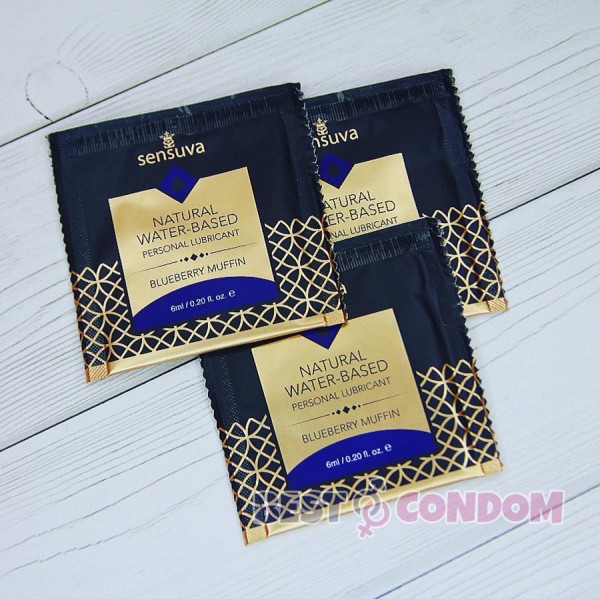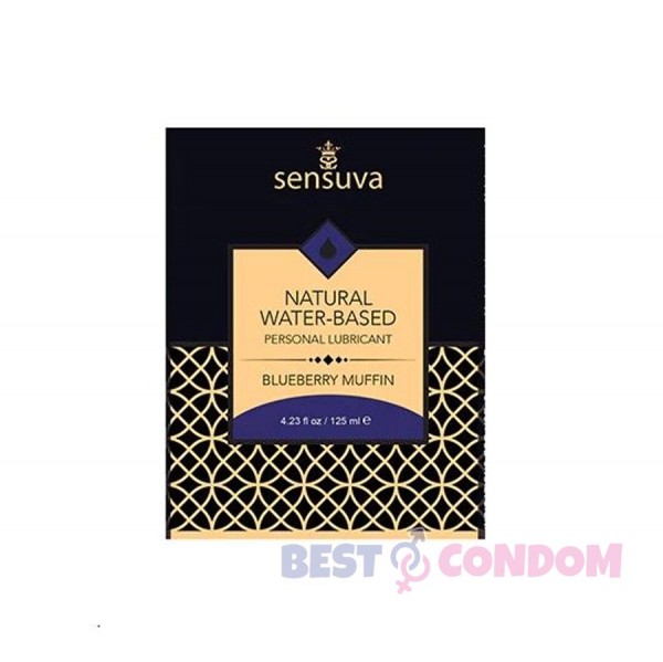 Природна зволоженість плюс ніжний насичений смак ЧОРНИЧНОГО МАФІНУ- від того, що ви отримаєте, якщо вирішите купити мастило на водній основі Sensuva Natural Water-Based Blueberry Muffin.