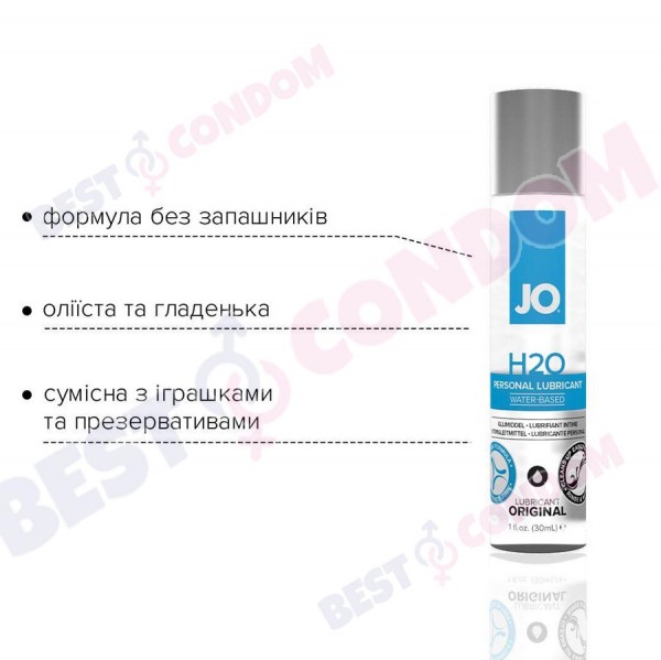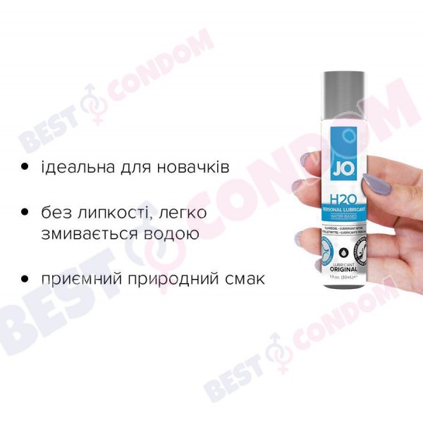Змазка на водній основі System JO H2O — ORIGINAL (30 мл) — це інтимний лубрикант на водній основі, замінює та доповнює природну змазку. Виготовлений з використанням гліцерину виключно рослинного походження. Цей лубрикант, що користується великою популярністю, забезпечує комфортне, ніжне ковзання й не залишає відчуття липкості.
