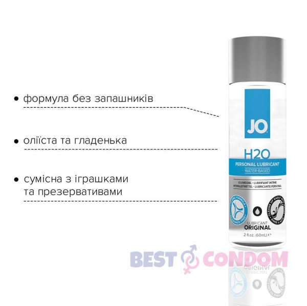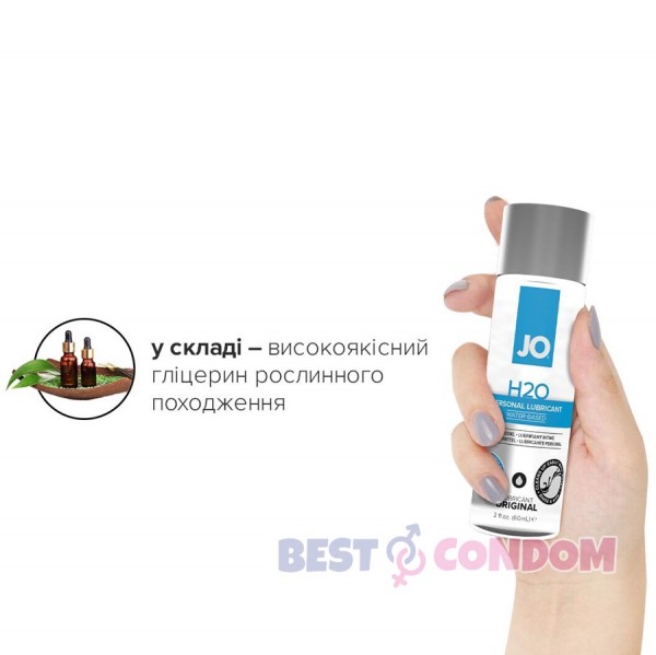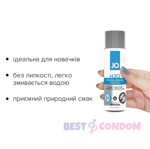 Змазка на водній основі System JO H2O — ORIGINAL (60 мл) — це інтимний лубрикант на водній основі, замінює та доповнює природну змазку. Виготовлений з використанням гліцерину виключно рослинного походження. Цей лубрикант, що користується великою популярністю, забезпечує комфортне, ніжне ковзання й не залишає відчуття липкості.