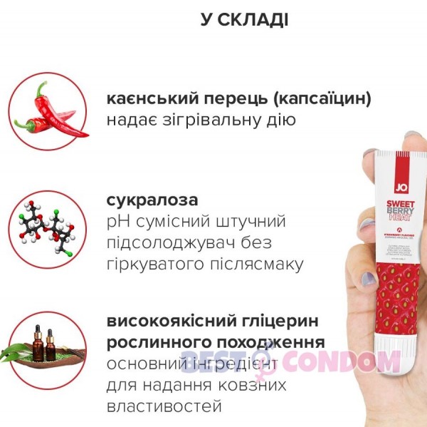 Гель System JO Sweet Berry Heat (10 мл) створює збудливий розігріваючий ефект на кліторі, зі смаком полуниці.