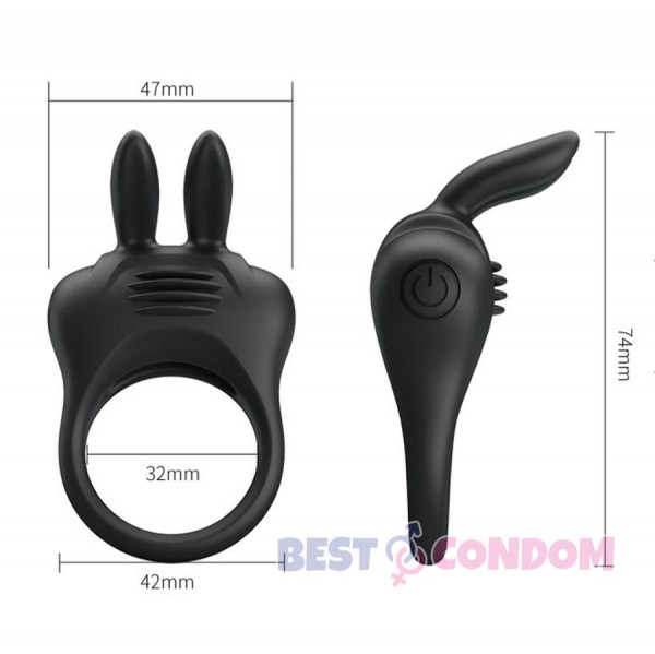 Ерекційне кільце із пружного силікону з вібростимулятором, має стимулятор клітора у вигляді зайчика та систему утяжки пеніса. Ерекційне кільце підтримує та продовжує ерекцію та стимулює клітор вашої партнерки. Працює в одному потужному режимі, керується за допомогою однієї кнопки. Матеріал – силікон.