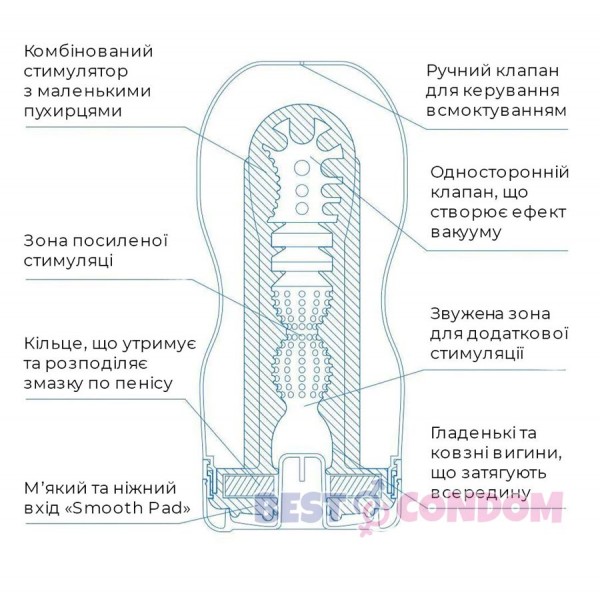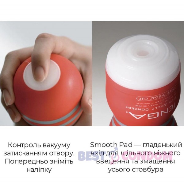 Tenga Deep Throat Cup імітує відчуття глибокого мінету. Спеціальні клапани створюють вакуум усередині, аби доставити дивовижне відчуття підсмоктування. Верхні вентиляційні отвори можна залишити відкритими або закритими за допомогою пальця. Це дозволяє регулювати вакуум та змінювати інтенсивність всмоктування. Унікальна форма Tenga Deep Throat Cup допомагає відтворити збудливі звуки, аби ви змогли повністю поринути в задоволення глибокого мінету.
